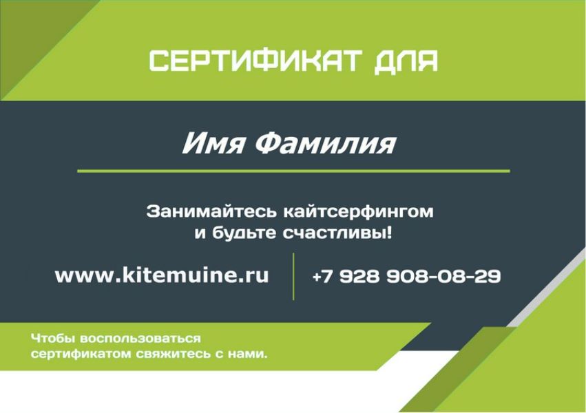 При прохождении курса обучения кайтсерфингу каждому ученику школы выдается карточка кайтбордера IKO подтверждающая ваш уровень катания