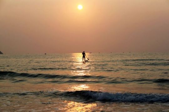 Нам нравится на рассвете кататься в небольших волнах, заряжаться позитивом и бодрым настроением. Освоить SUP довольно несложно!